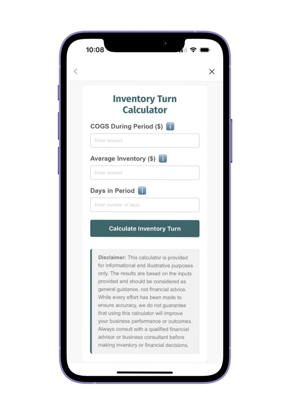 The Inventory Turn Calculator will quickly let you know how many times you sell and replace your inventory over a specific period of time.
